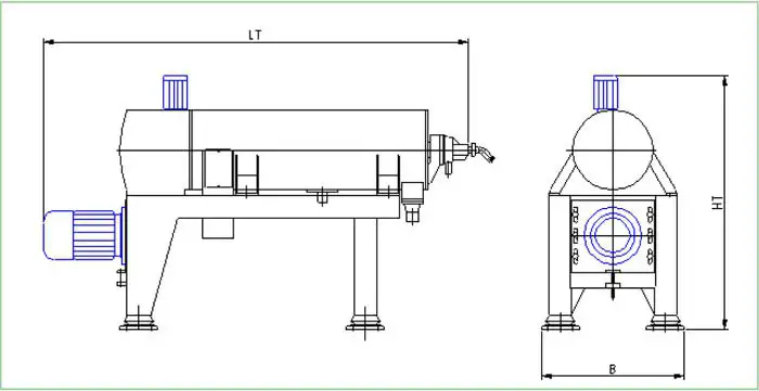 Gracias a la fuerza centrífuga, la parte líquida forma un anillo en la parte interna y la parte sólida se adhiere a las paredes del tambor. El clarificado es evacuado por medio de unos vertederos concéntricos, mientras que el fango deshidratado es arrastrado hasta las bocas de salida por donde sale a gran velocidad.