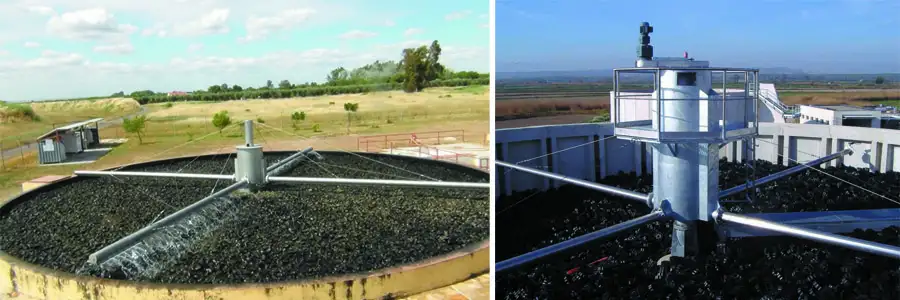 FILTRAMAS, S.A. suministra distribuidores rotativos diseñados a medida para garantizar una distribución uniforme del agua sobre los lechos bacterianos o filtros percoladores, utilizados en sistemas de tratamiento biológico aerobio de aguas residuales.