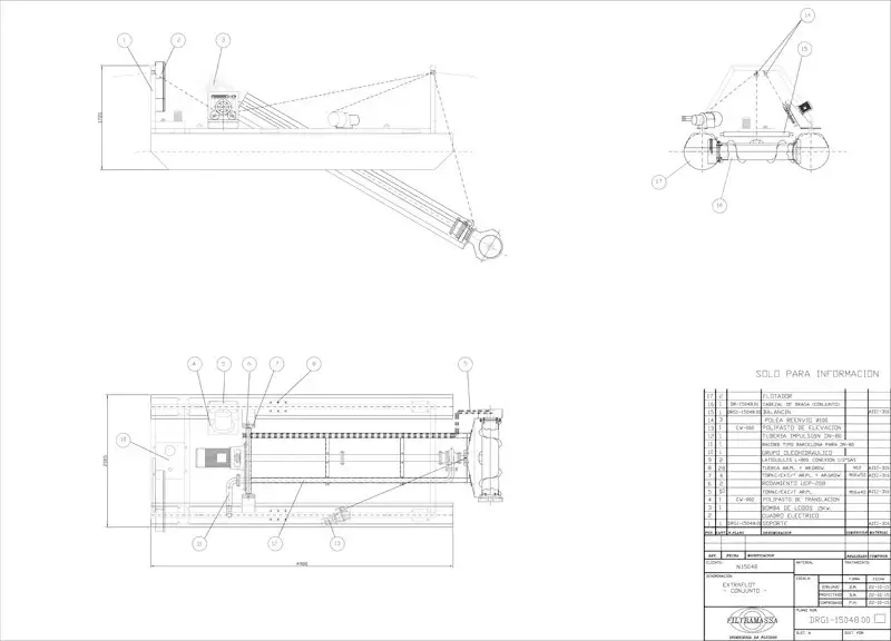 La minidraga FG ha sido diseñada para la extracción de los fangos sedimentados en una laguna. Está formada básicamente por un catamarán, con dos flotadores cilíndricos, una bomba de extracción de fangos y un sistema pivotante de dragado.