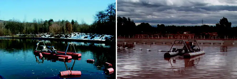 Los fangos extraídos del fondo de la laguna son impulsados a la orilla de la misma por medio de una bomba centrífuga con rodete tipo VORTEX desplazado y una tubería flotante.